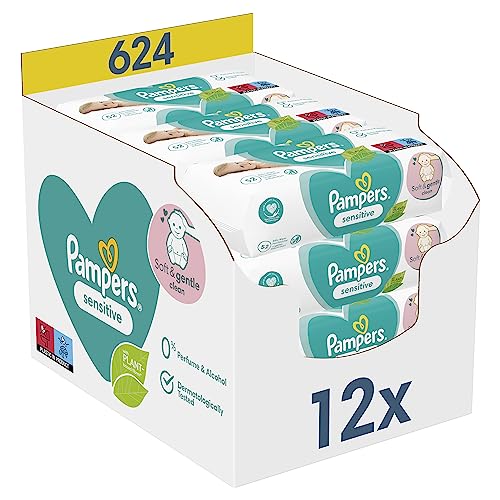 Pampers Lingettes Bébé Fresh Clean, 624 Lingettes (Lot de 12 x 52), Sans Alcool, Parfum Rafraichissant, Aussi Pour Les Mains Et Le Visage, Testées Dermatologiquement