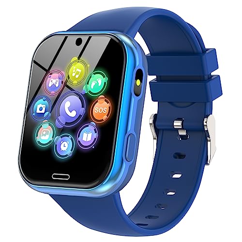 Montre Connectée Enfant - Smartwatch Téléphone Pour Fille Garçon avec Appel SOS, Réveil, 19 Jeux, Montre Intelligente Enfants de 4 à 12 Ans Cadeau avec Musique, Appareil Photo, Lampe Poche, Bleu
