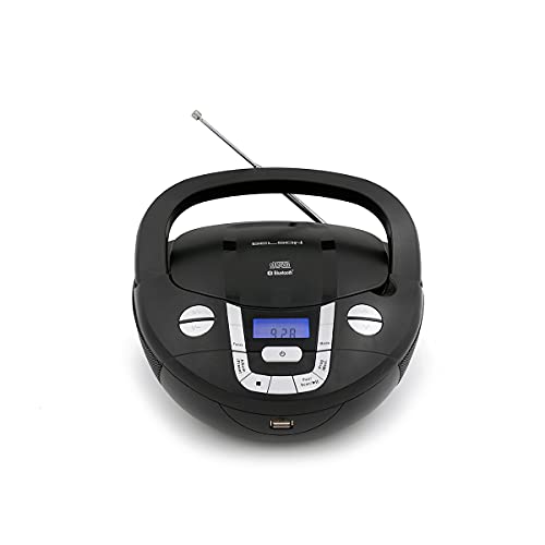 Denver TCL-212BTGREY Lecteur de CD Portable Boombox. Radio FM. Bluetooth. Haut-parleurs Volume 4W. Entrée AUX. Lecture MP3 Via USB Noir/Gris