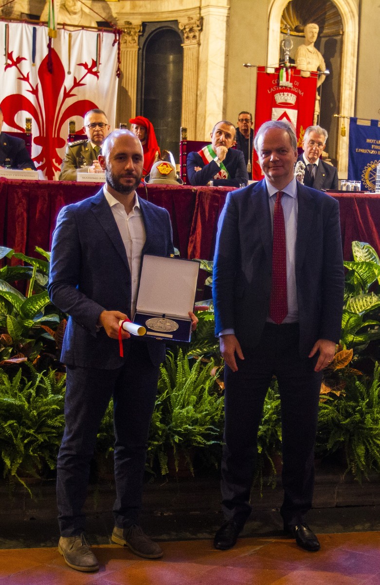 De nombreuses autorités étaient présentes : Luca Miliani, président de la Mairie de Florence, Roberto Lupi, président et fondateur de l’Istituto Scudi di San Martino, le chef d’état-major de la marine, l’amiral Enrico Credendino, le commissaire de police de Florence Maurizio Auremma, le général du corps d’armée. (Aux. Rich.) Massimo Panizzi (Commandant de l’Institut Géographique Militaire), le Commandant de l’École Maréchale de Florence Pietro Oresta, le Consul Général de France Guillaume Rousseau et Lucie Calderon Cressent (Présidente du Grand Prix de l’Aide Humanitaire de France ). et délégué permanent de l’UNESCO). Mattia Aguzzi de Turin a reçu le Bouclier d’Argent.