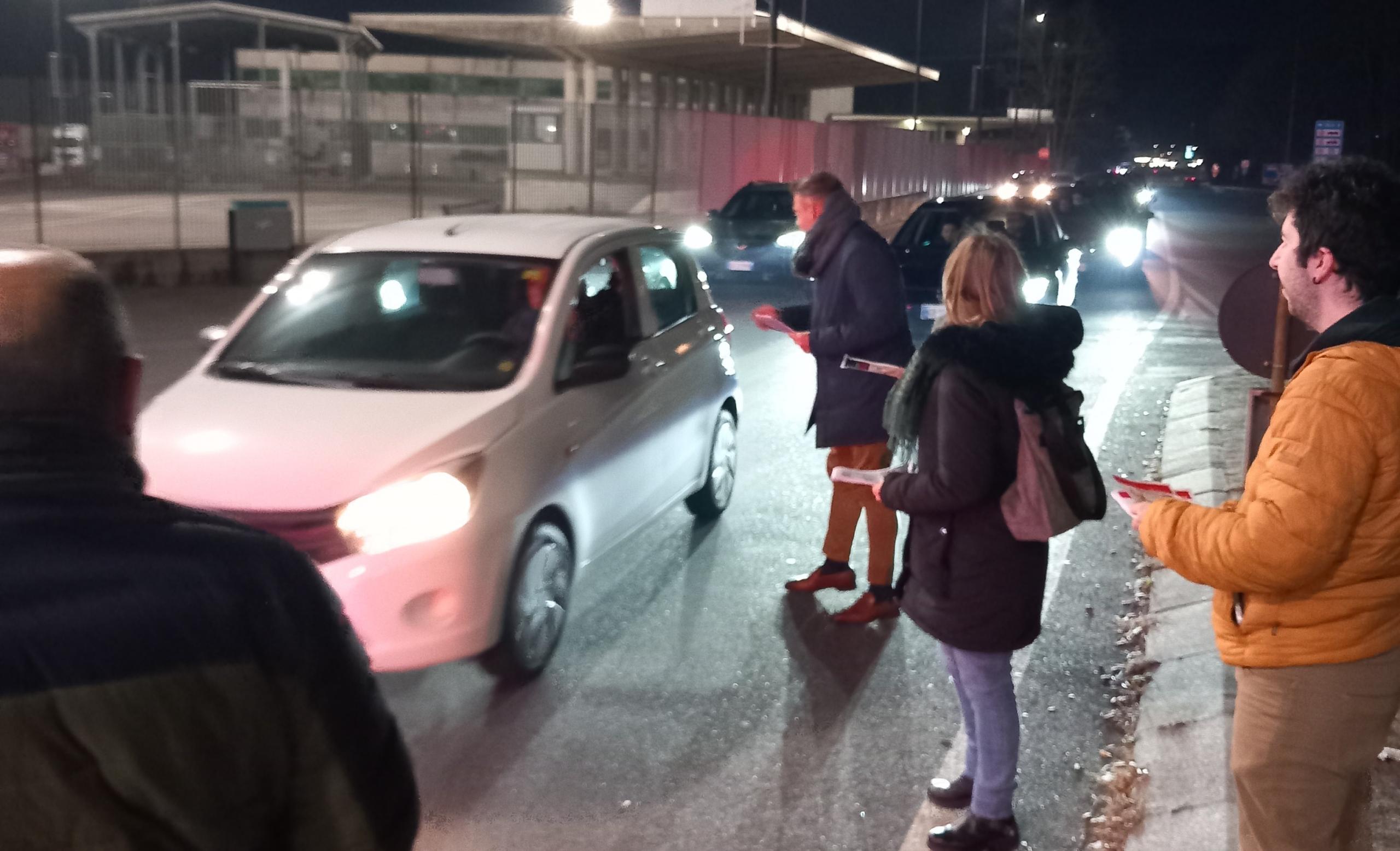 Le Conseil Régional du Parti Démocrate Samuele Astuti et le secrétaire provincial Alice Bernardoniavec un groupe de sympathisants, réunis ce matin au poste frontière de Gaggiolo pour dénoncer l’introduction d’une taxe sanitaire supplémentaire pour les frontaliers, qui devront payer une taxe pour participer au Service National de Santé dans la région de résidence de un minimum de 3% et un maximum de 6% des salaires nets perçus en Suisse.