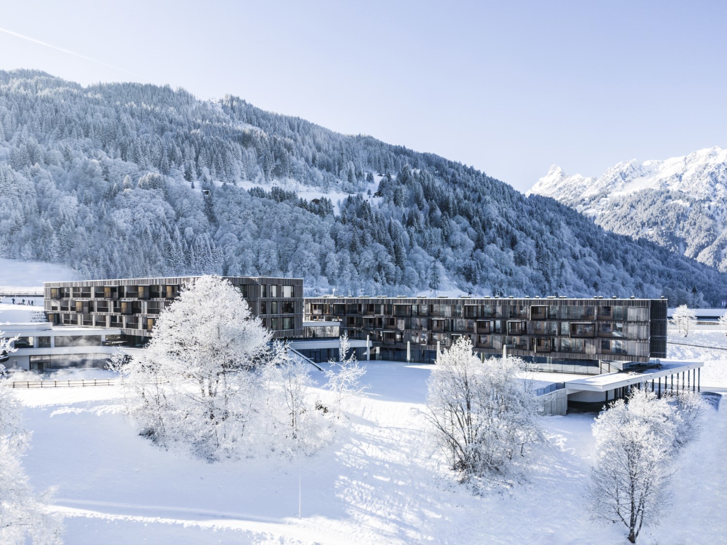 Le style alpin, caractérisé par le bois brut et les murs en plâtre blanc, est un hommage à la tradition locale, où le « Montafoner Häusl », un bâtiment en pierre et en bois, a été le modèle architectural de la région pendant des siècles et a façonné le paysage culturel de la vallée du Montafon.
