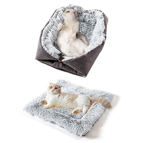 - Lit douillet pour chat : Le lit convertible en peluche pour chat est idéal pour garder votre chat bien au chaud par temps froid. La fonction 2 en 1 du lit pour chat permet aux chats de se reposer et de se détendre de différentes manières. Peu encombrant et facile à transporter.