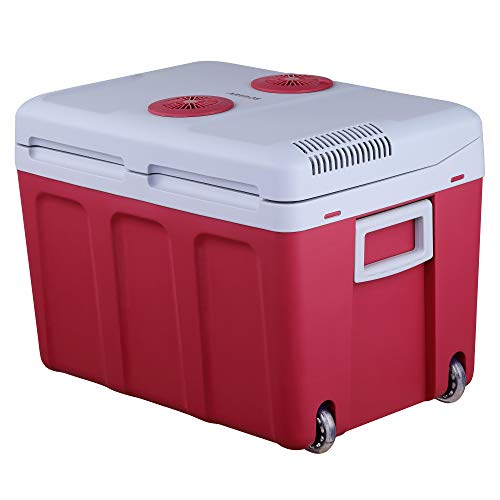 Arebos Glacière 40 litres | pour Refroidir & Maintenir au Chaud | Réfrigérateur Mobile | 12/230 V pour Voiture & Prise de Courant | Glacière électrique | Rouge [Classe énergétique E]