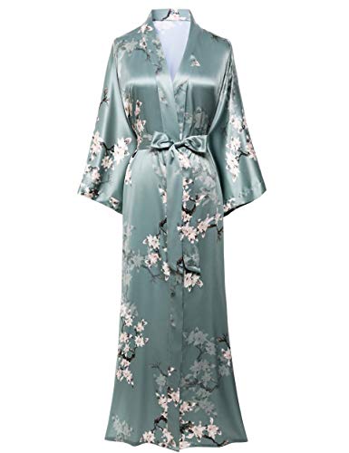 Coucoland Robe de chambre longue en satin pour Femme Robe de plage Kimono Motif à fleurs Cardigan Peignoir Long Imprimé pour Femme Robe Longue FleursPajama Party Style-3-Vert